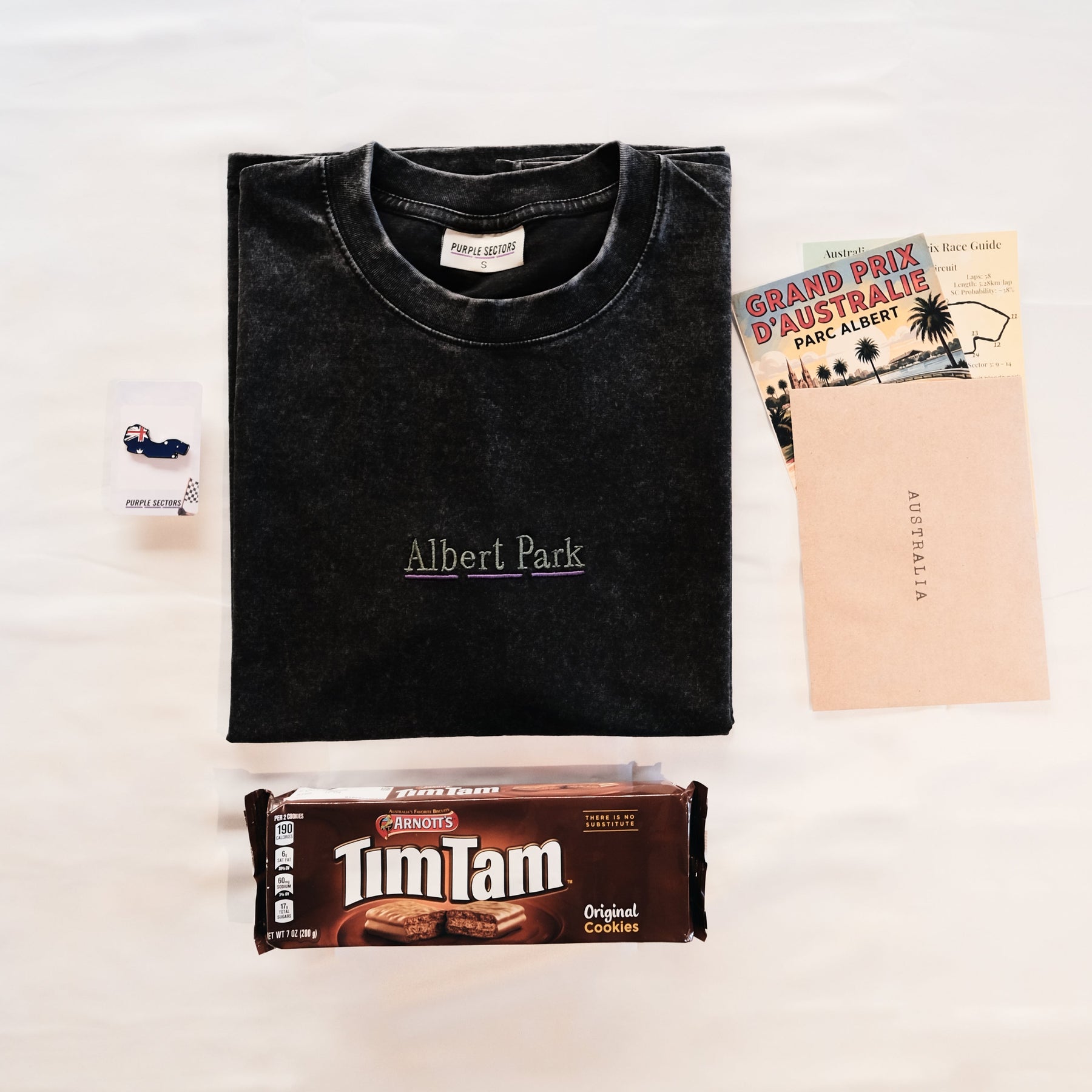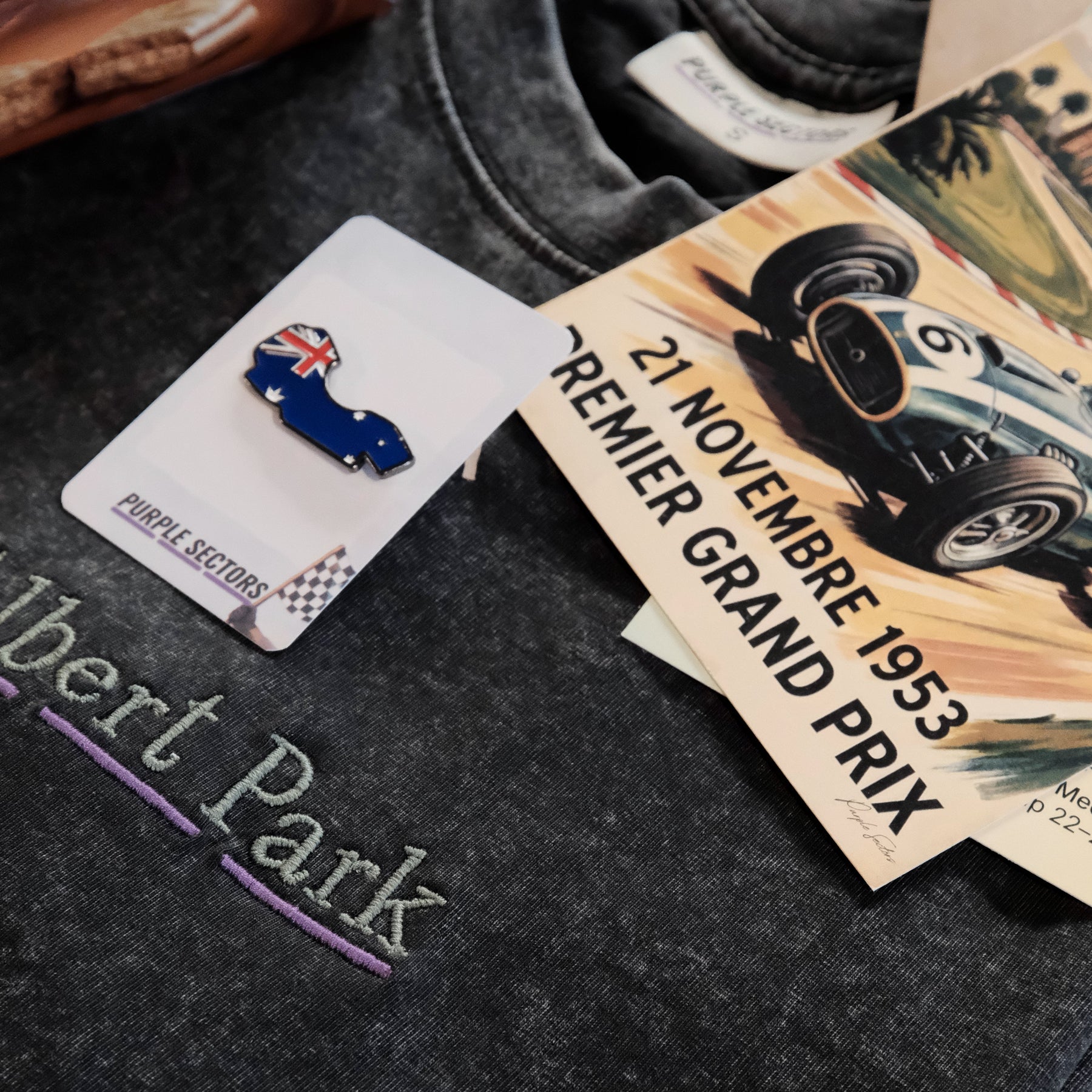 Each race weekend features curated apparel inspired by the circuit itself. We rotate items throughout the season — including t-shirts, hats, tote bags, and other wearable pieces — designed to capture the character and culture of each track.