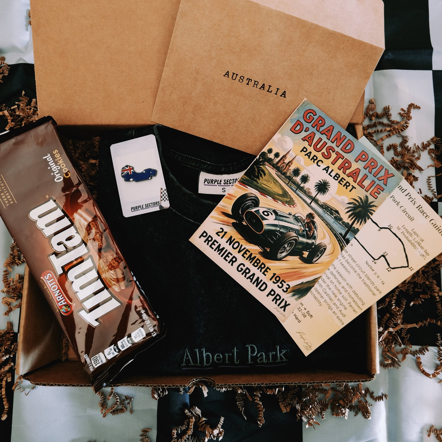 While delivery timing can vary by location and carrier, we do our best to have boxes arrive before or around the Grand Prix weekend so you can enjoy it as part of race week.